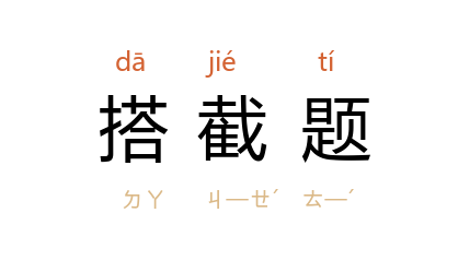 ⒈ 清 代科举考试八股文,有取经文中某段末句和下一段的首句;或上句的后半句或末一字和下句的上半句或第一字,连接起来作试题的,称“搭截题”。亦省作“搭题”、“搭截”。