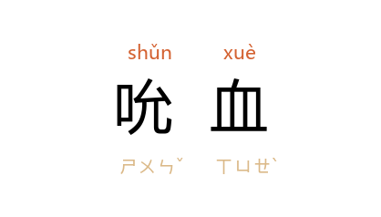 ⒉ 野兽、毒虫吸饮人血。常比喻残害人民,榨取血汗。