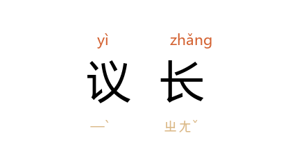 ⒈ 议会组织中的主席。由议员互选产生,有一定的任期。对外代表全会,对内综理议会会务,维持议场秩序,并整理议案。