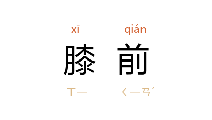 引瞿秋白 《赤都心史》三七:“我不得不回想父母膝前的旧梦。”茅盾 《一个女性》三:“如果此时她是在母亲膝前,她一定要放声哭了。”