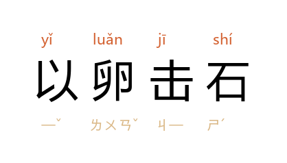引《三国演义·第四三回》:「刘豫州不识天时,强欲与争,正如以卵击石,安得不败乎?」《封神演义·第五三回》:「今将军将不过十员,兵不足二十万,真如群羊斗虎,以卵击石,未有不败者也。」