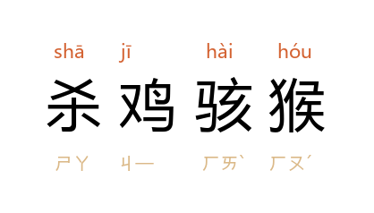 引《官场现形记》第五三回:“俗话説得好,叫做‘杀鸡骇猴’,拏鸡子宰了,那猴儿自然害怕。”