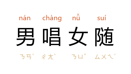 ⒈ 犹夫唱妇随。谓女方必须附和男方。后亦用以形容夫妻和睦。