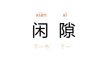 ⒉ 空隙(中间空着的地方或尚未占用的时间)。