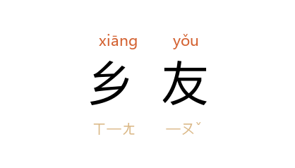 引宋 苏轼 《和周正孺堕马伤手》:“卖却老驄为酒直,大呼乡友作新年。”《东周列国志》第七二回:“东皋公 笑谓 薳越 曰:‘将军误矣!此吾乡友 皇甫訥 也。’”