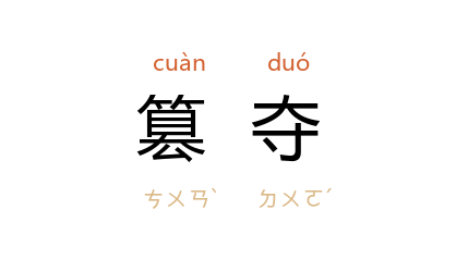 ⒉ 今多指用不正当的手段夺取地位或权力。