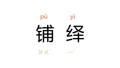 ⒈ 犹布陈;陈述。语出《左传·宣公十二年》:“又作《武》,其卒章曰:'耆定尔功。'其三曰:'铺时绎思,我徂维求定。'”杨伯峻注:“今《诗》'铺'作'敷',同音通用……敷,布也。绎,陈也。思,语末助词,无义。徂,往也。谓文王既有勤劳之德,我接受之,布陈此勤劳之德,我之往伐纣,惟求安定而已。铺与绎皆布陈之义,一再言之,重之也。”