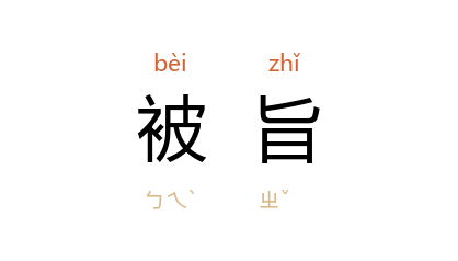 引宋 岳飞 《永州祁阳县大营驿题记》:“权 湖南 帅 岳飞 被旨讨贼 曹成。”金 元好问 《续夷坚志·麻神童》:“刘微 七岁,被旨赋《凤皇来仪》。”《续资治通鉴·宋徽宗政和元年》:“摄 瓘 至州庭,大陈狱具,将胁以死, 瓘 揣知其意,大呼曰:‘今日之事,岂被旨邪!’”