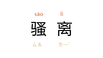 引《国语·楚语上》:“德义不行,则邇者骚离,而远者距违。”韦昭 注:“骚,愁也;离,叛也。”汉 焦赣 《易林·履之随》:“三姦相扰, 桀 跖 为交,上下骚离,隔絶天道。”