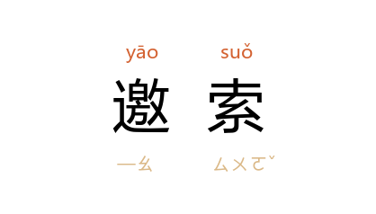引《旧五代史·晋书·赵在礼传》:“在礼 望尘致敬,首领等倨受其礼,加之凌辱,邀索货财, 在礼 不胜其愤。”《朱子语类》卷一〇六:“今到处并不管著限日,或迟延一月,或迟延两三月,以邀索县道,直待计嘱满其所欲,方与呈州。”