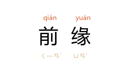 引唐 李商隐 《杂纂·隔壁闻语》:“新娶妇却道是前缘,必是丑。”宋 严蕊 《卜算子》词:“不是爱风尘,似被前缘误。”《初刻拍案惊奇》卷一:“我等与郎君辈原无前缘,故此先来告别。”周恩来 《送蓬仙兄返里有感》诗:“相逢萍水亦前缘,负笈 津门 岂偶然。”