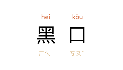⒈ 版本学上指一种线装书书口的格式。书的版心上下端所刻的线条,线条粗阔的称为「大黑口」,细狭的称为「小黑口」。