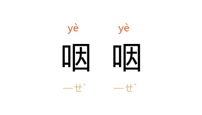 ⒊ 形容有节奏的鼓声。咽,通“鼝”。