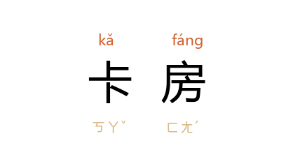 引李劼人 《天魔舞》第二三章:“皂班办公室,临时拘留人犯的私监,又名卡房,比正式牢狱还黑暗还糟的地方。”李劼人 《死水微澜》第六部分二:“但是 蔡掌柜 现正关在 成都县 的卡房里。”