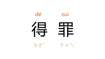 英语to commit an offense, to violate the law, excuse me! (formal), see also 得罪[de2 zui5], to offend somebody, to make a faux pas, a faux pas, see also 得罪[de2 zui4]