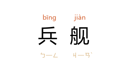 ⒈ 海军各种船舰的通称。可区分为作战船舰与辅助船舰。