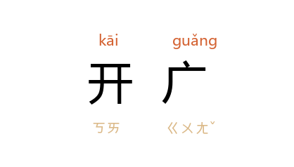引《后汉书·樊宏传》:“至乃开广田土三百餘顷。”明 方孝孺 《与郑叔度书》之八:“某年来多病,读书之外,无所用心,藏书不多,不足开广智识。”