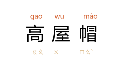 引唐 陆龟蒙 《幽居有白菊一丛因而成咏呈知己》“梁王 高屋好欹来”自注:“梁 朝有白纱高屋帽。”宋 苏轼 《椰子冠》诗:“规模简古人争看,簪导轻安髮不知。更著短簷高屋帽, 东坡 何事不违时。”王文诰 辑注:“李廌 《师友谈记》:士大夫近年倣 东坡 桶高簷短帽,名曰子瞻样。”