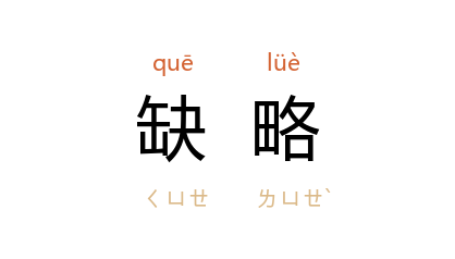引南朝 梁 萧绮 《<拾遗记>序》:“世德陵夷,文颇缺略。”唐 刘知几 《史通·疑古》:“《书》之所载,以言为主,至於废兴行事,万不记一,语其缺略,可胜道哉!”清 李渔 《闲情偶寄·演习·变调》:“旧本传奇,每多缺略不全之事、刺谬难解之情。”