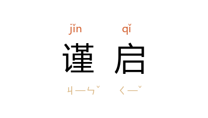 引晋 何充 等《沙门不应尽敬表》:“是以復陈愚诚,允垂省察。谨啟。”南朝 梁 刘勰 《文心雕龙·奏启》:“孝景 讳 啟,故两 汉 无称,至 魏国 笺记,始云啟闻,奏事之末,或云谨啟。”唐 崔致远 《贺高司马除官状》:“下情无任忭跃之至,谨奉啟陈贺。谨啟。”清 焦循 《与刘端临教谕书》:“循 顿首谨啟 端临 先生足下。”