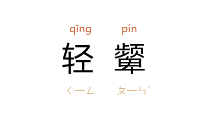 引南唐 李煜 《长相思》词:“云一緺,玉一梭,淡淡衫儿薄薄罗,轻顰双黛螺。”《剪灯新话·翠翠传》:“誓海盟山心已许,几番浅笑轻顰。”清 龚自珍 《湘月·甲戌春泛舟西湖赋此》词:“一抹春山螺子黛,对我轻顰姚冶。”