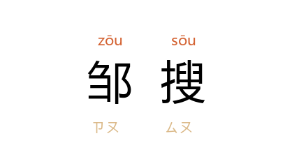 引《刘知远诸宫调·知远充军三娘剪发生少主》:“男如 潘岳,女生 越 艳,媒人口一似蜜舌头…… 王嫂、李婆,説得两个太邹搜。”《刘知远诸宫调·君臣弟兄子母夫妇团圆》:“这三箇福气邹搜,内中两箇潜龙帝,一箇是诸侯。”