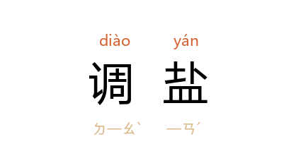 引《书·说命下》:“若作和羹,尔惟盐梅。”后以“调盐”喻任宰相治理国政。 宋 王安石 《送郓州知府宋谏议》诗:“治装行入覲,金鼎重调盐。”