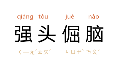 引《何典》第五回:“进了对科衙门,看见那些阴兵,一个个拳头大,臂膊粗,强头倔脑的,恐怕管他不下,心里甚着急。”洪深 《香稻米》第二幕:“你这样强头倔脑的,动不动要和人家讲理,一点不肯吃亏,一丝不肯委屈,果然今朝弄出事情来了。”