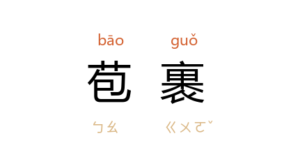 引《大戴礼记·劝学》:“受恶不让似贞,苞裹不清似入。”《文子·道原》:“夫道者,高不可极,深不可测,苞裹天地,禀受无形。”《吕氏春秋·离俗》:“若夫 舜 汤,则苞裹覆容,缘不得已而动,因时而为。”