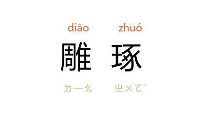 彫琢:1.雕刻琢磨。 《孟子·梁惠王下》:“今有璞玉於此,虽万鎰必使玉人彫琢之。”