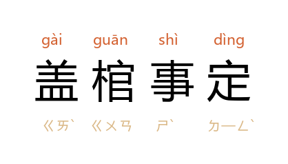 例如:「评人功过,必须综观始末。盖棺事定,才算客观。」
