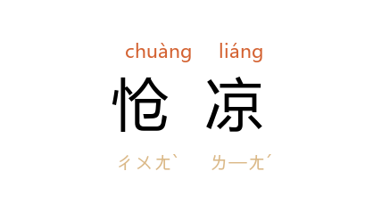 引《辛亥革命前十年间时论选集·雷昭性<名说>》:“吾盖观于名之一字,而不禁为吾国数千年愴凉感喟,欷歔欲絶焉矣。”阎树田 《日出之前》:“忽然,远处传来凄楚、怆凉的山歌声,不由得吸引了他的注意。”