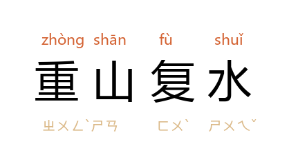 引宋 林逋 《风水洞》诗:“平昔常闻风水洞,重山复水去无穷。”陈毅 《东征初抵高淳》诗:“此日一帆凴顾盼,重山复水是 江 南。”