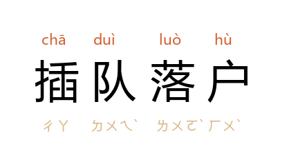 引巴金 《随想录·怀念萧珊二》:“出乎意外,第二天一早,我那个插队落户的儿子在我们房间里出现了。”亦省作“插队”。 陈建功 《飘落的花头巾》一:“我在一九六七年去插队时,妈妈已经让人整死了。”