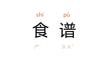 ⒈ 记载食品的材料、用量与做法的文件或书籍。