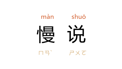 ⒈ 也作“漫说”。用在偏句表示较轻较浅的事都“如此”,正句常用“就是”、“即使”等呼应,表示较重较深的事“更是如此”,相当于“别说”