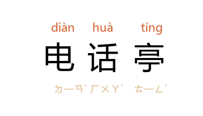 ⒈ 建在车站、码头、邮局、街头等场所的公共设施,多分割成独立的小间,内装电话机,可供公众使用。