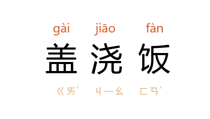 ⒈ 一种论份儿出售的饭,用碗或盘子盛米饭后在上面加菜而成。也称盖饭。