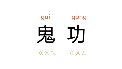 引唐 陈子昂 《感遇》诗之十九:“鬼功尚未可,人力安能存。”唐 白居易 《东林寺经藏西廊记》:“建修多罗藏一所。土木丹漆之外,饰以多宝。相好严丽,邻诸鬼功。”唐 李岘 《剑池》诗:“闔閭 葬日劳人力, 嬴政 穿来役鬼功。”