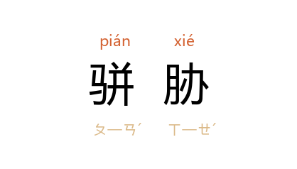 ⒈ 亦作“駢脇”。 肋骨紧密连接为一,是一种生理上的畸形。