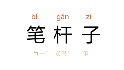 ⒈ 见“笔桿子”。亦作“笔杆子”。亦作“笔杆”。