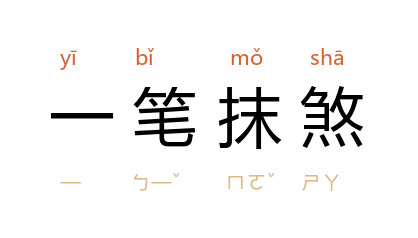 亦作“一笔抹摋”、“一笔抹杀”。 清 袁枚 《随园诗话》卷七:“唐 以前,未有不熟精《文选》理者…… 宋 人以八代为衰,遂一笔抹摋,而诗文从此平弱矣。”