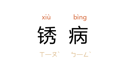 ⒈ 亦作“銹病”。由真菌引起的植物病害。发生病害的植物叶子和茎出现铁锈色的斑点,产量受到影响。