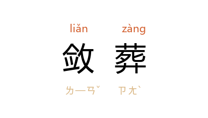 引《汉书·云敞传》:“敞 时为大司徒掾,自劾 吴章 弟子,收抱 章 尸归,棺敛葬之。”《新唐书·裴冕传》:“鉷 死, 李林甫 方用事,僚属惧,皆引去,独 冕 为敛葬,由是寖知名。”《宋史·仁宗纪二》:“詔诸戍边军月遣内侍存问其家,病致医药,死为敛葬之。”
