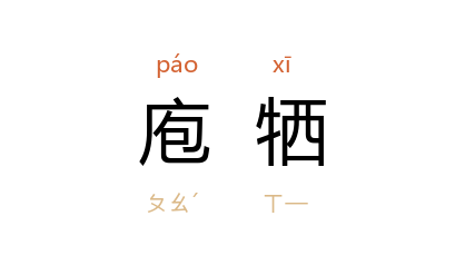 ⒈ 古代一位皇帝。教民佃渔畜牧,始画八卦,造书契。因养牺牲以充庖厨,故称为「庖牺」。汉·许慎〈说文解字序〉:「古者庖牺氏之王天下也,仰则观象于天,俯则观法于地。」南朝梁·刘勰也作「伏羲」。