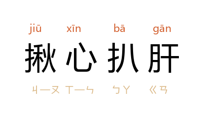 例如:「从母亲进开刀房的那一刻起,全家人就都揪心扒肝的在外守侯。」
