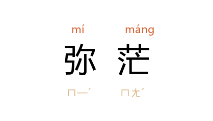 引宋 叶适 《漳浦县圣祖殿记》:“然其汎之瀰茫,遁之幽遐,家薜萝,友鸥鷺,亦甘於独往而人莫能同,固不取也。”犹言迷茫、广远。 宋 辛弃疾 《上西平·会稽秋风亭观雪》词:“起来极目,向弥茫、数尽归鸦。”