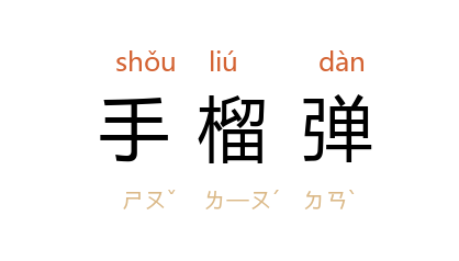 ⒈ 用手投掷的小型爆炸弹。适用于近距离的搏击。
