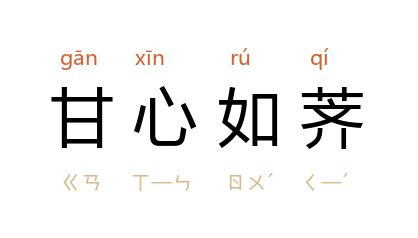 ⒈ 后因以“甘心如薺”谓事如乐意为之,虽苦亦甜。