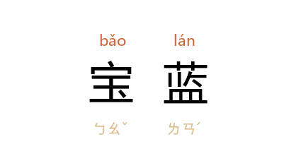 引《儒林外史》第一回:“一个穿宝蓝夹纱直裰,两人穿元色直裰。”闻一多 《青春》诗:“青春象只唱着歌的鸟儿,已从残冬窟里闯出来,驶入宝蓝的穹窿里去了。”李季 《柴达木小唱》诗:“镶着银边的 尕斯库勒湖,湖水中映照着宝蓝的天。”
